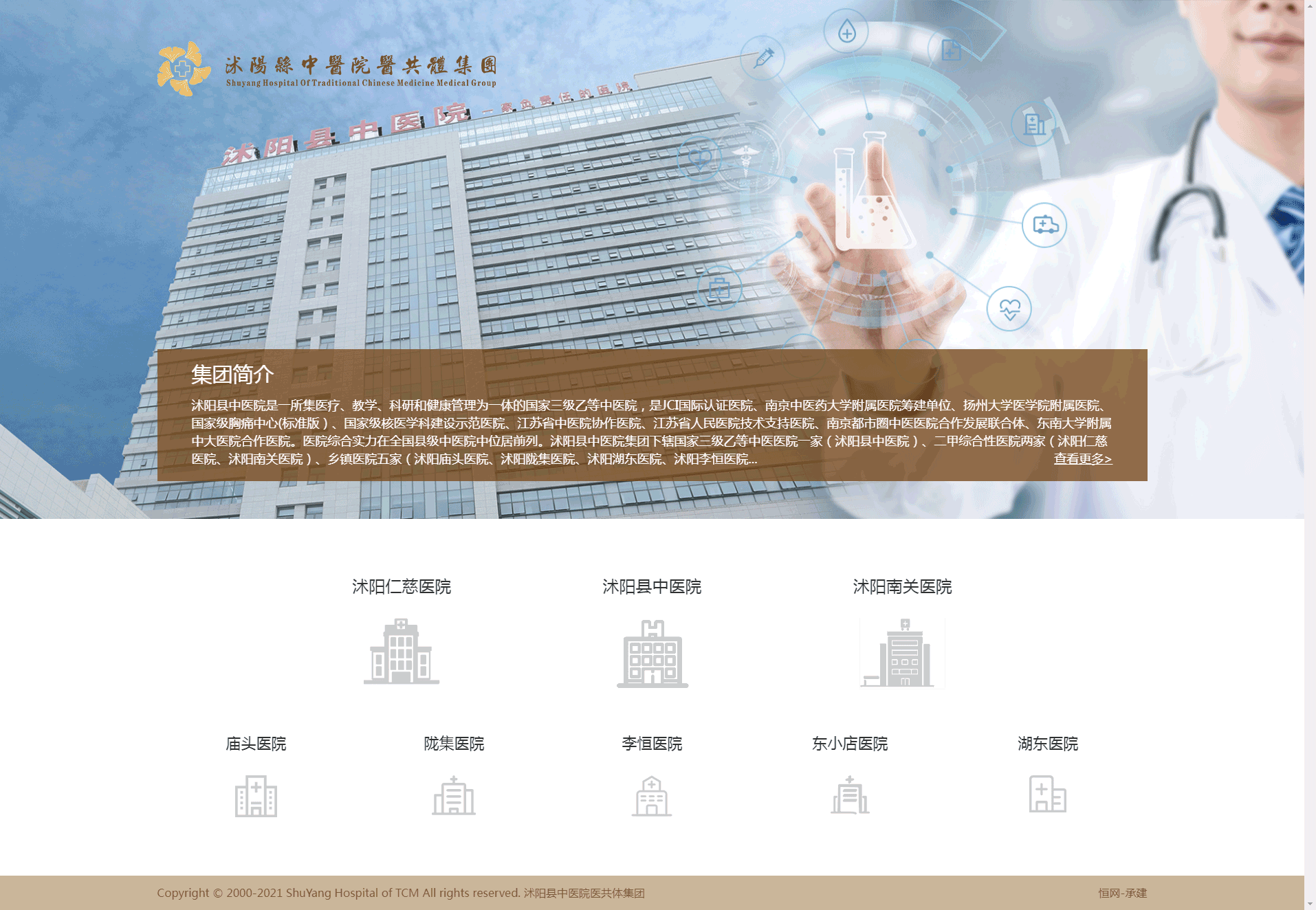 沭陽縣中醫院是一所集醫療、教學、科研和健康管理為一體的國家三級乙等中醫院,是JCI國際認證醫院、南京中醫藥大學附屬醫院籌建單位、揚州大學醫學院附屬醫院、國家級胸痛中心(標準版)、國家級核醫學科建設示范醫院、江蘇省中醫院協作醫院、江蘇省人民醫院技術支持醫院、南京都市圈中醫醫院合作發展聯合體、東南大學附屬中大醫院合作醫院。醫院綜合實力在全國縣級中醫院中位居前列。