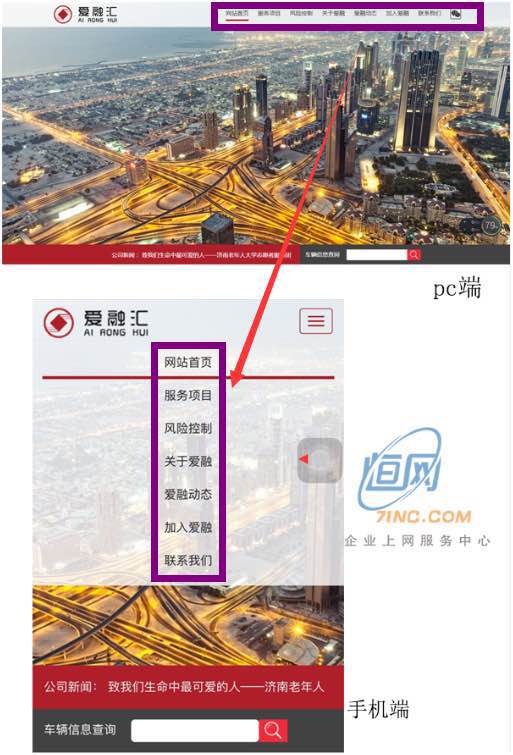 PC端網頁在移動端設備上首要的障礙就是導航的使用。看看下面愛融會的案例,它的桌面端和移動端網頁的對比就相當明顯,移動端頁面經過優化之后的體驗就完全不同。簡單說來,優化后的移動端頁面有著更容易導航的CTA按鈕